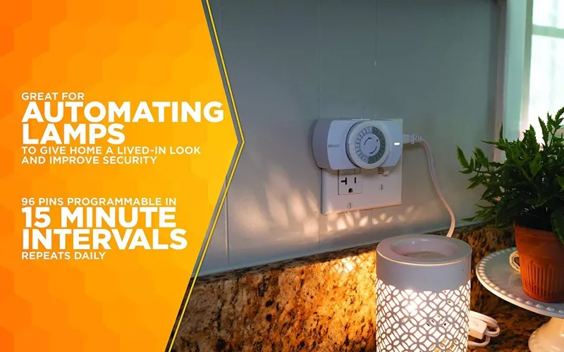 - 24-HOUR, HEAVY DUTY, INDOOR TIMER great for automating lamps to give home a cozy lived-in look and improve security