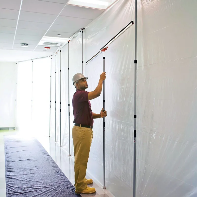 • Seals a dust barrier up to 8′ along the ceiling, floor or wall